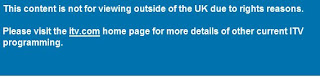 Like the rest of the world, I became enchanted by ITV’s Britain’s Got Talent when I saw Paul Potts‘ remarkable performance on YouTube – oh the tears! This of course led to hunger for more and I randomly went through some of the related YouTube videos. At one point I thought ‘hang on – I’m sure they’ve got a website with better quality clips and a much better organisational overview’. And they do -yay! But no – I get this picture up. “This content is not for viewing outside of the UK due to rights reasons”. Urgh! My thoughts go to the delightful Ben Hammersley‘s words: