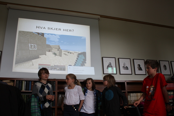 We organised a little presentation round which I administrated and I think it went really well. Martin talked a bit about the Scratch program, Anne Marthe and her son shared with us their adventures with Scratch, an amazing woman called Suzann talked about the Rapberry Pi and I interviewed a panel of young Minecrafters. The panel was supposed to be only 3 kids, but it doubled very quickly. I was a little afraid that they might be too shy, but there was just no stopping them! They ran me over with information and enthusiasm. I had just googled some pictures from Minecraft and asked them to describe what was happening. It was so much fun hearing about their experiences and it also felt kinda great to see how cool they thought it was that we actually wanted to hear. They almost seemed grateful for the opportunity to FINALLY teach us dull adults about this exciting world.